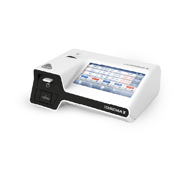 Ichroma™ II is an automatic or semiautomatic in-vitro diagnostic device that measures the concentration of analytes, contained in blood, urine, or other samples, in quantitative or semi-quantitative ways.
